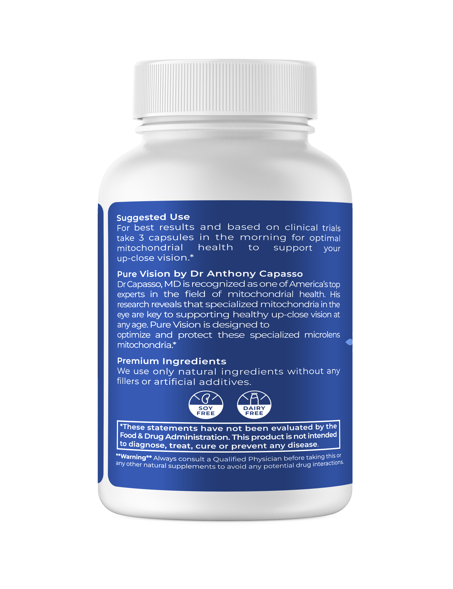 Thankfully our collaboration with Dr Capasso provides a solution. Recognized as one of America’s top anti-aging doctors, and a pioneer in the field of mitochondrial health, his research led to the groundbreaking formulation of natural ingredients inside Pure Vision that’s now helping folks across America who used to be needlessly held hostage to fuzzy vision and reading glasses until now.